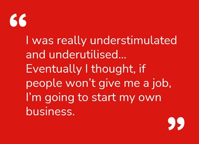 ‘I was really understimulated and underutilised,’ Usman recalls. ‘Eventually I thought, if people won’t give me a job, I’m going to start my own business.’